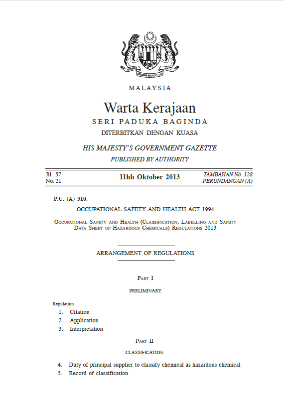 Regulations Under the Occupational Safety and Health Act 1994